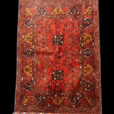 Håndlavet tæppe, unik genstand, oprindelse Afghanistan, dimensioner 170 x 94 cm, materiale uld på bomuld, generelt i god stand med tegn på ældning og slitage. Klik på den blå "gå til varen" knap, for at købe eller byde på denne vare. Den samlede pris vil blive vist inden du afgiver dit bud.