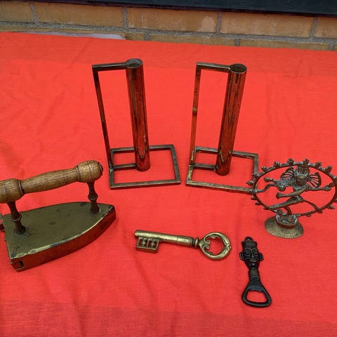 Qajar-periode messing hookah-hoved (Sar-e Qalyan) udsmykket med turkiske cabochons og røde glasperler, indvendigt lerindhold, lille afskalling ved kanten, ca. 1850–1890. Klik på den blå "gå til varen" knap, for at købe eller byde på denne vare. Den samlede pris vil blive vist inden du afgiver dit bud.