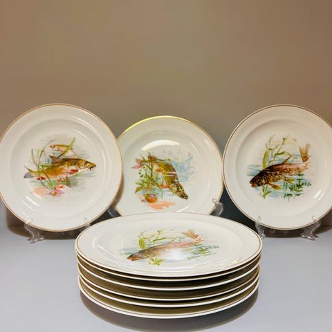 Sæt af 8 porcelæns tallerkener fra Limoges – Fin gulddekor, prestigefyldt fabrikation