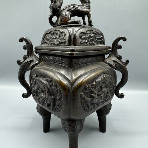 Antique Qing period Incense burner Polychrome Objects Animals - Røgelsesbrænd...