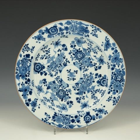 Denne udsøgte porcelænsplade fra Kangxi-perioden fremviser den mesterlige koboltblå maleri, som æraen er fejret for.