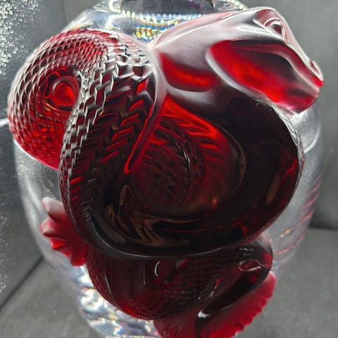 Lalique-vasenabsolut fantastisk, designet i 1961 af Marc Lalique til ære for sin far, René Lalique.