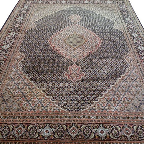Ny luksuriøs håndlavet indisk Tabriz-tæppe lavet af fin uld og silke på en bomuldsbund. Tabriz-teppet med et klassisk og luksuriøst Mahi-design, der er perfekt til at fremhæve funktionerne og farverne. Dette er et ægte håndlavet Mahi-teppe-mesterstykke med ca. 325.000 knuder/m².
