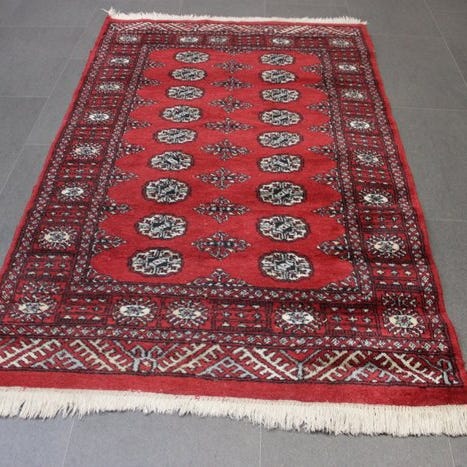 Buchara, 100% håndknyttet tæppe fra Pakistan, 190 × 130 cm, uld på bomuld, ca. 490.000 knuder, i god stand. Klik på den blå "gå til varen" knap, for at købe eller byde på denne vare. Den samlede pris vil blive vist inden du afgiver dit bud.