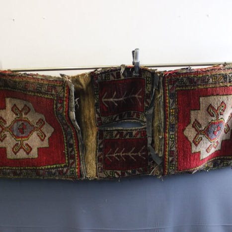 Oprindelse Tyrkiet; 100% håndknyttet uldtæppe i blå og rød, måler 105 × 100 cm, pilehøjde ca. 3–5 mm, ca. 160.000 knuder, i meget god stand og professionelt renset. Klik på den blå "gå til varen" knap, for at købe eller byde på denne vare. Den samlede pris vil blive vist inden du afgiver dit bud.