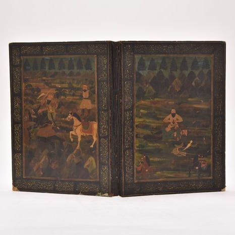Jeg inviterer dig til at være vidne til dette unikke mesterværk fra Awadhs kongerige (Oudh). Dette er et håndlavet spejlsæt fremstillet under kejseren Muhammad Ali Shah, Awadhs konge fra 1837-1842, og opbevaret af hans efterfølger, kong Abu Muzaffar.