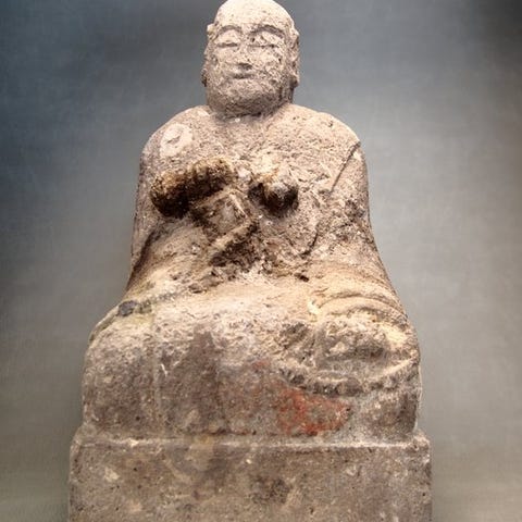 Ekstremt sjælden Ebisu-støtte fra Edo-perioden, fremstillet af tegltøjleler, dateret 1847, af Zenji, målene 21,8 × 12,7 × 13,2 cm, vægt 1,7 kg. Klik på den blå "gå til varen" knap, for at købe eller byde på denne vare. Den samlede pris vil blive vist inden du afgiver dit bud.