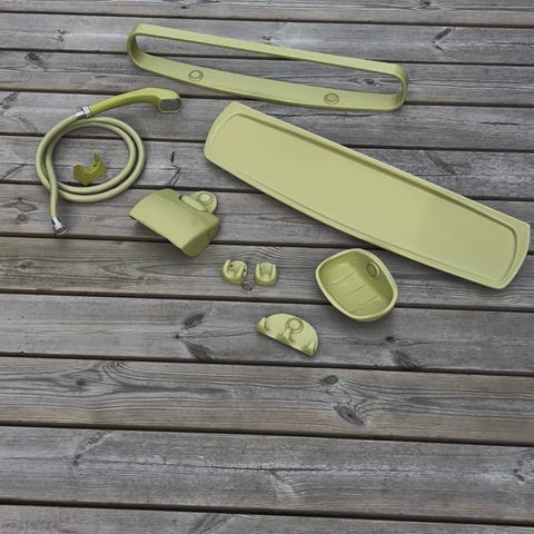 Valambert Luxval toiletset fra Val Saint Lambert, Belgien, Art Deco støbt amberfarvet glas fra ca. 1930–1940, bestående af fire dele (parfumeflacon, to pudderbeholdere, kande), mål ca. 10 cm høj, 5 cm bred og 5 cm dyb. Klik på den blå "gå til varen" knap, for at købe eller byde på denne vare. Den samlede pris vil blive vist inden du afgiver dit bud.