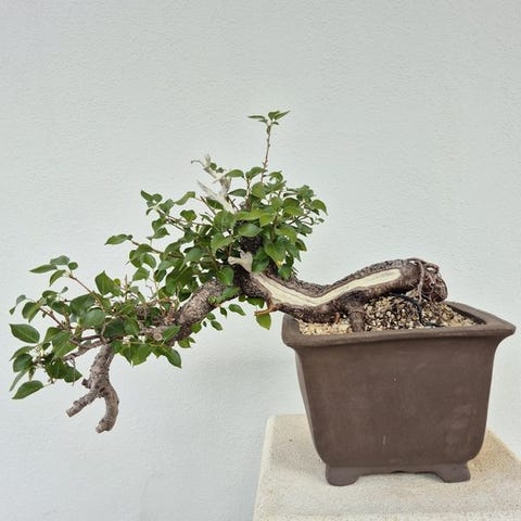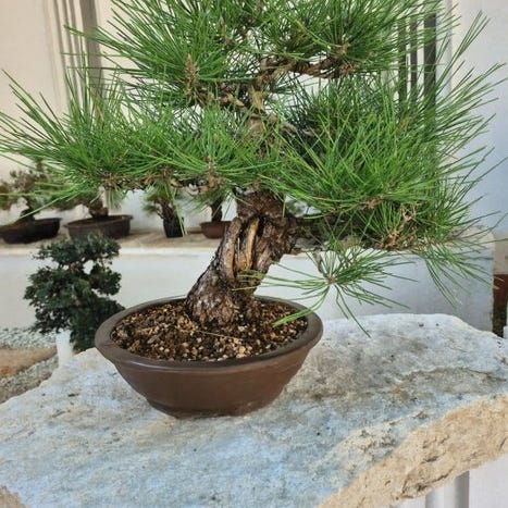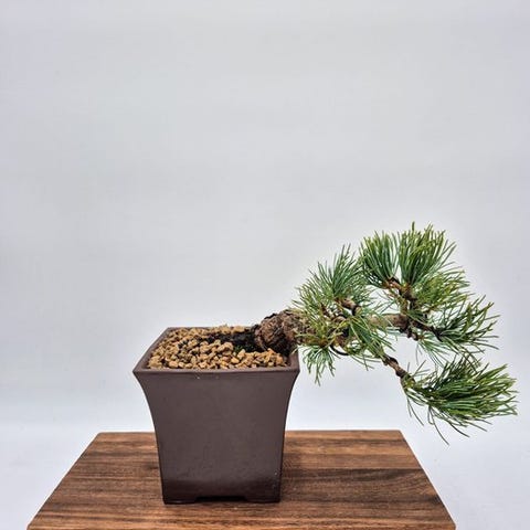 Et klassisk udendørs bonsai-eksemplar af Pinus pentaphylla (japansk hvid fyr), værdsat af samlere og entusiaster for sine evigtgrønne nåle i klynger af fem og for sin langsomme, raffinerede vækst. Dette træ udgør et fremragende udgangspunkt for yderligere formgivning eller træning mod en formel bonsai-design. Japansk hvid fyr er et traditionelt bonsai-emne kendt for elegance og karakter.