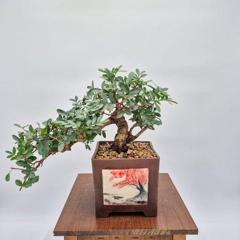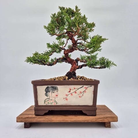 Evergreen Pinus pentaphylla bonsai i håndlavet potte, træhøjde 21 cm og stammediameter 12,5 cm, afsendes i trækasse. Klik på den blå "gå til varen" knap, for at købe eller byde på denne vare. Den samlede pris vil blive vist inden du afgiver dit bud.