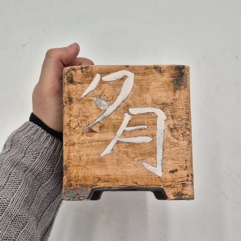 Håndtegnet bonsai-pot med bjerglandskab – Zen-stil - Højde (Træ): 16 cm - Dyb...
