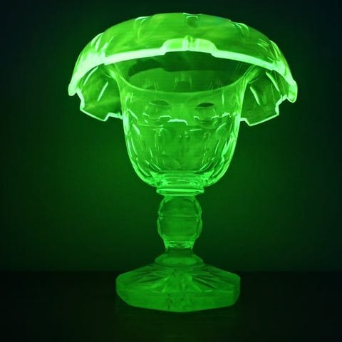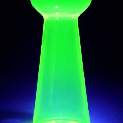 Sjælden Art Deco 'Garlic'-model Uraniumglas hyacintvase – Glasfabriek Leerdam