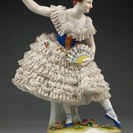 Figurinen er vintage, typisk produceret mellem 1930'erne og 1950'erne.