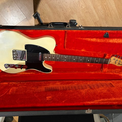 To genstande: Fender Vintage Original 1966 Telecaster, årgang 1966, i god stand, testet og fungerer, med originalkasse, fremstillet i USA, krop i sumpask og hals i palisander. Klik på den blå "gå til varen" knap, for at købe eller byde på denne vare. Den samlede pris vil blive vist inden du afgiver dit bud.