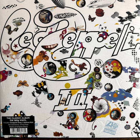 Led Zeppelin III, en japansk førsteudgave fra 1970 hos Atlantic (MT-2043) med OBI, gatefold og insert, medie EX og emballage VG+. Klik på den blå "gå til varen" knap, for at købe eller byde på denne vare. Den samlede pris vil blive vist inden du afgiver dit bud.