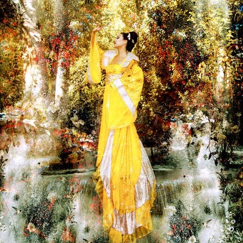 Vietnamesisk kvinde i kongelig-inspireret kostume. Dette foto er fra kunstfotosekvensen "The Golden Imprint!" af Viet Ha Tran, der blev offentliggjort i over 20 magasiner og aviser i Vietnam i 2015, samt i flere internationale kunstmagasiner gennem det sidste årti.