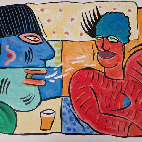 Franz Borghese, Senza titolo, gouache på papir, 25 × 34 cm; en unik originalværk fra 1980’erne, håndsigneret og indrammet bag glas. Klik på den blå "gå til varen" knap, for at købe eller byde på denne vare. Den samlede pris vil blive vist inden du afgiver dit bud.
