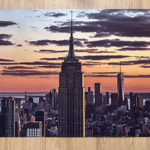 Den øvre halvdel af kompositionen viser verden, som den er: den ikoniske arkitektur i det nedre Manhattan, badet i sollys og kronet af bløde skyer. Den nedre halvdel inviterer imidlertid seeren til at drive væk. Reflektionen i vandet er tilsigtet abstrakt, hvilket gør den stive bysilhuet til en blød, vandmaling-lignende illusion. Det vækker følelsen af at se byen gennem et regnfuldt vindue eller at genkalde et fjern minde. Dette værk er en smuk påmindelse om, at selv de mest solide strukturer kan mildnes af perspektivet. En perfekt tilføjelse til ethvert rum, der har brug for et vindue ud mod verden.