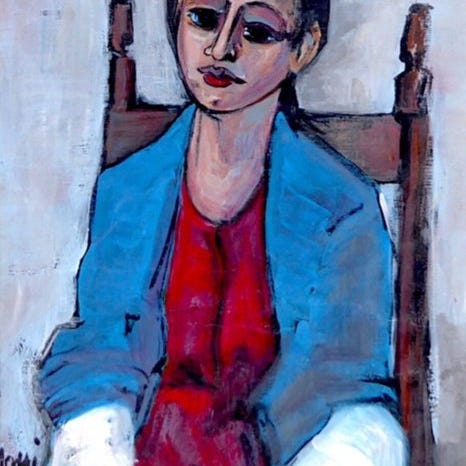 Et oliemaleri på lærred, der forestiller et kvindeligt portræt, udført af Alfio Rapisardi i 1960'erne og 1970'erne. Rapisardis stil er resultatet af et raffineret samspil mellem traditionen, især den toscanske renæssancekultur, og avantgarde. Renæssancens arv kan genfindes i den rationelle ånd, der styrer udformningen af kompositionerne, som kendetegnes ved en perfekt balance mellem former og farver, arrangeret i en stærkt geometrisk retning. Motiverne bliver dog afbildet nedbrudt, hvilket skaber en kompleks rumlighed, der peger mod kubismen, og som bliver syntetiseret i en abstrakt