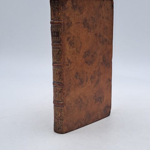 Jacobus Malconetus, Selbst-lehrende Geometrie, første tyske udgave (1700), vellumbund, 490 sider, udgivet af Johann Adolph og Philipp Wilhelm Stock, med graveret frontispiece af J. à Montalegre, én foldbar plade og 24 af 25 foldbare træsnit-plader, i rimelig stand med en manglende plade. Klik på den blå "gå til varen" knap, for at købe eller byde på denne vare. Den samlede pris vil blive vist inden du afgiver dit bud.