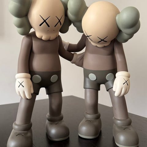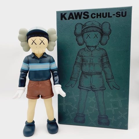 KAWS Small Lie Companion Vinyl Figur Black fra 2017, en ny version af hans klassiske karakter Companion, kaldet “Small Lie”. Figuren viser Companionen sunket sammen i det, der ser ud til at være en skuffet stilling, med en lang næse, der minder om Pinocchios.