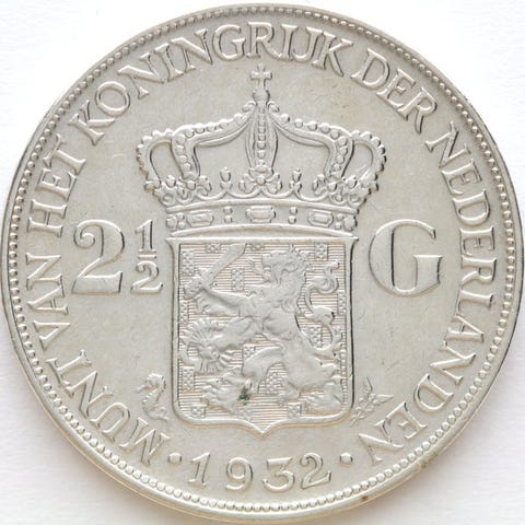 Nederlands sølv ½ gulden mønt, 1906, slået under dronning Wilhelmina, renhed 945/1000, møntermestermærke Hellebaard, fræseportræt med diadem, bagside kronet nederlandsk våben mellem ½ og G, reference Schulman 833, kvalitet Prachtig+ (aUNC). Klik på den blå "gå til varen" knap, for at købe eller byde på denne vare. Den samlede pris vil blive vist inden du afgiver dit bud.