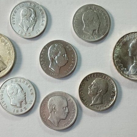 En komplet fremragende serie af sølvmønter 1 lira og 2 lire Quadriga af Vittorio Emanuele III, 1914–1917, i meget høj stand. Klik på den blå "gå til varen" knap, for at købe eller byde på denne vare. Den samlede pris vil blive vist inden du afgiver dit bud.