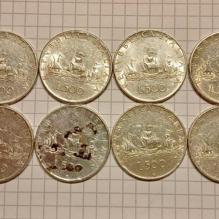 Lotto på 5 komplette divisjonelle lire-mønter er i perfekt stand. De indeholder alle sølvmønter og 1970, ud over 500 lire også 1000 lire i sølv. Det, I vil modtage, er at se billederne.