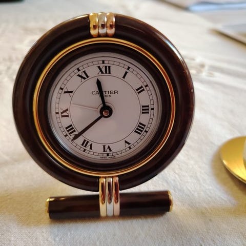 Bordur med alarm fra CARTIER Paris. Numereret og original med serienummeret 0564049. Et sjældent og svært at få fat i samlerobjekt. Materiale: metal. Tilstand som på billedet. Mål højde ca. 10 cm. For at se alle annoncer følg os på vores sociale sider: @alexdesignmilano.