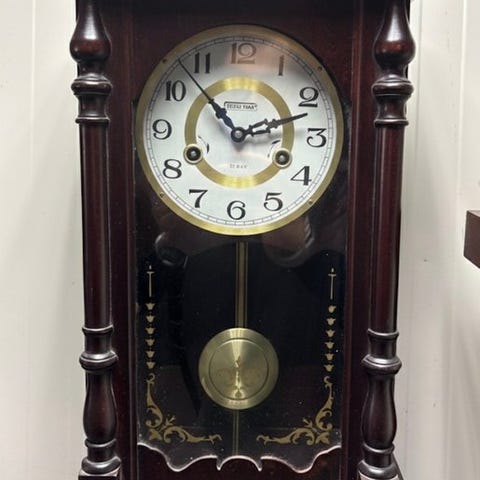 Dette vægur repræsenterer en tradition for mekaniske ure, der går tilbage til det 19. århundrede, hvor pendelure blev grundlæggende husholdningsartikler. Den manuelle optrækning med 31 dages gang indikerer en enestående kvalitet og et overlegent håndværk i forhold til standardmodeller med 8- eller 15-dages gang, hvilket afspejler det forfinede håndværk fra midten af det 20. århundrede. Kassen i træ med blomsterdekoration i metal på toppen og urskiven, der er klar med arabiske tal, er karakteristisk for den traditionelle amerikanske stil.
