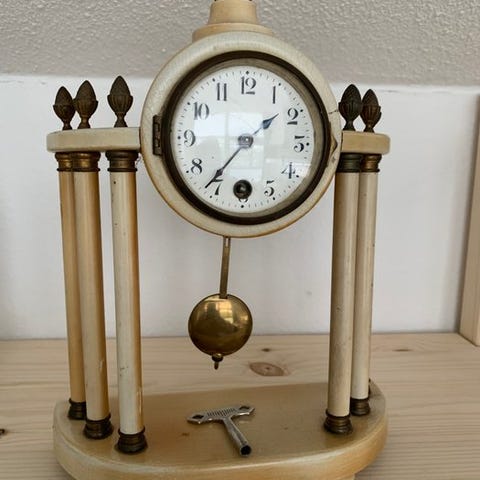 Tilbehør: Inkluderer sit pendel og optræksnøgle. FR | Pendule Portique XIXe – Lombard à Pontoise