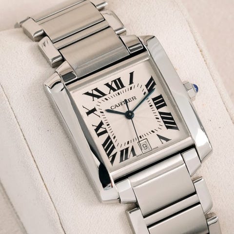 Cartier Tank MC, Ref. 3589, automatisk bevægelse, rustfritstålskasse med en diameter på 34 mm, læderrem, herreur fra perioden 2010–2020, i meget god stand med mindre slitage, uden æske eller papirer. Klik på den blå "gå til varen" knap, for at købe eller byde på denne vare. Den samlede pris vil blive vist inden du afgiver dit bud.