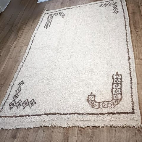 Mød dette unikke Berbertapijt: et autentisk statement-stykke, der løfter ethvert rum i hjemmet til et højere niveau. Håndknyttet af dygtige håndværkere fra Atlasbjergene i Marokko, efter århundredgamle traditioner. Fremstillet af 100% naturlig fåreuld til et luksuriøst, holdbart og miljøvenligt resultat.