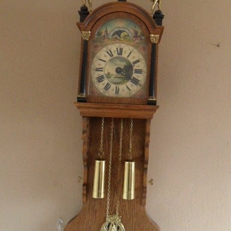 Hollandsk malet vækker, 1970–1980, mekanisk urværk, træ med messing og glas, 46 × 46 × 16 cm, vægt 6,1 kg, slag hver halve time med en gong, optrukket nøgle medfølger, i funktionsdygtig stand. Klik på den blå "gå til varen" knap, for at købe eller byde på denne vare. Den samlede pris vil blive vist inden du afgiver dit bud.