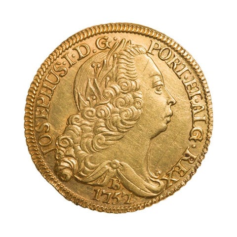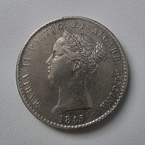 Portugisisk guldmønt 5.000 Reis fra 1851 under Dronning Maria II (1834-1853), vægt 8,88 g og diameter 23,55 mm, i XF/XF- stand og beskrevet som Escassa. Klik på den blå "gå til varen" knap, for at købe eller byde på denne vare. Den samlede pris vil blive vist inden du afgiver dit bud.