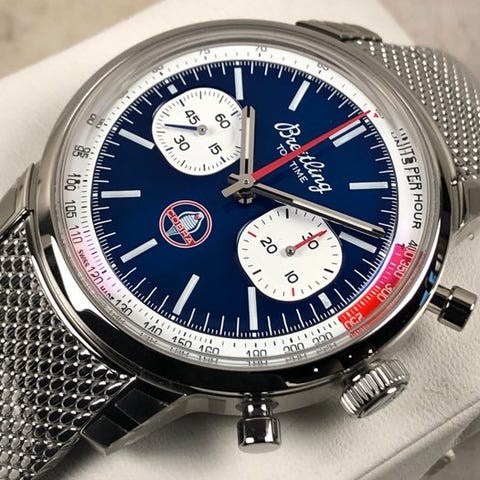 Breitling Avenger B01 Chronograph 42, reference AB0146101C1X1, stillet stål kasse 42 mm, blå skive, schweizisk automatisk urværk B01, blå originalt læderrem, stand Mint, ex-display, inkluderer original æske, papirer og Breitling fabriksgaranti, forsendelse forsikret. Klik på den blå "gå til varen" knap, for at købe eller byde på denne vare. Den samlede pris vil blive vist inden du afgiver dit bud.