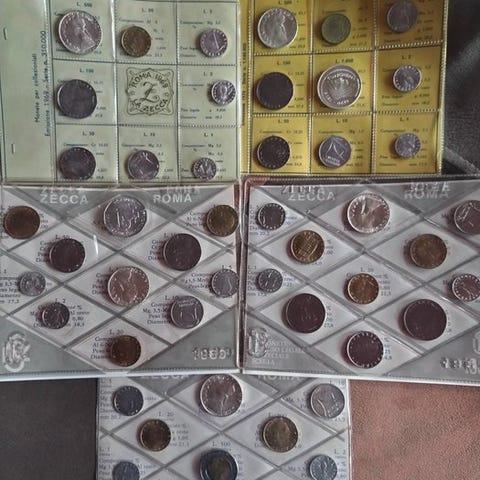 Lot på 11 mønter af 500 lire i sølv præget i forskellige år fra 1959 til 1965.