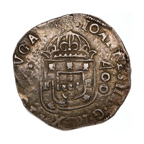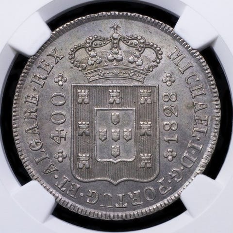 Cruzado Calvário (400 Reais) - Lisboa - R:D:C / VINCS (S Invertido) - 2. Tipo - NGC - AU58 - Rara - Sølv