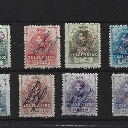 Geografisk oprindelse: Cabo Juby, Marokko; Frimærker habiliteret Edifil 68/72 og 74/77, MNH, kort serie, 1935–1936, nyt uden fiks. Klik på den blå "gå til varen" knap, for at købe eller byde på denne vare. Den samlede pris vil blive vist inden du afgiver dit bud.