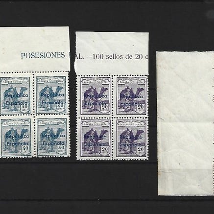 Geografisk oprindelse: Sahara español; Titel: final de serie sin fijasellos; Tilstand: Novo uden lim; År: 1932; Katalog: Edifil 46bhi/47bhi; med certifikat. Klik på den blå "gå til varen" knap, for at købe eller byde på denne vare. Den samlede pris vil blive vist inden du afgiver dit bud.