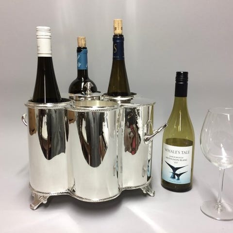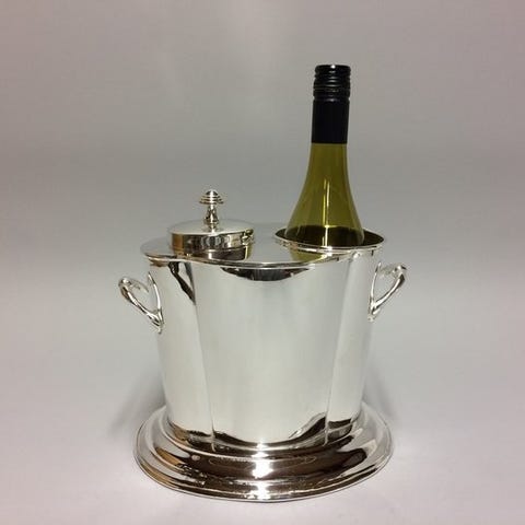 Sølvbelagt vinkøler til 2 flasker med isbeholder i midten.
