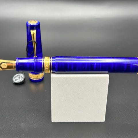 Fyldepenet viser de karakteristiske gule striber i Harings stil på en mørkeblå baggrund, suppleret med guldfarvede metalakcenters og clipgravur „ACME“. Dette eksemplar leveres i den originale ACME-metalboks med en passende skumindsats samt den originale følgebrev til udgaven. Boksen har stadig den ubrudte beskyttelsesfolie og blev kun åbnet til fotodokumentationen.