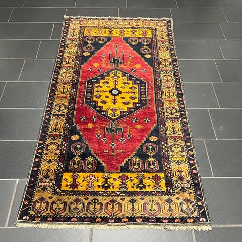 Oprindelse: Tyrkiet; Model Yahyahli 202x96cm, tæppe i uld-til-uuld målende 202 cm x 96 cm, i fremragende stand og professionelt rengjort, fra midten af det XX. århundrede. Klik på den blå "gå til varen" knap, for at købe eller byde på denne vare. Den samlede pris vil blive vist inden du afgiver dit bud.