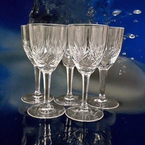 Elegant sæt med 8 champagneglas i slebet krystal fra den prestigefyldte belgiske krystalfabrik Val Saint-Lambert, model Yale