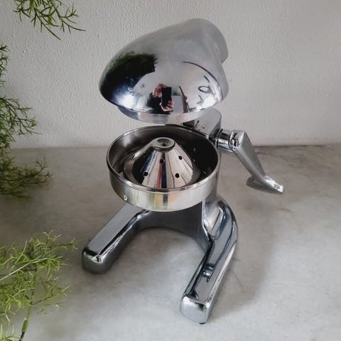 Imponerende og robust version af en vintage, manuel citruspresser.