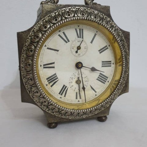 En vintage Yema messingur fra Frankrig med mekanisk urværk, Neuchâteloise-urtype, estimeret periode 1960–1970, 1-dages kraftreserve, vækkeuret klinget, optrukket nøgle inkluderet, i funktion, højde 15 cm, bredde 8 cm, dybde 3 cm, vægt 300 g. Klik på den blå "gå til varen" knap, for at købe eller byde på denne vare. Den samlede pris vil blive vist inden du afgiver dit bud.