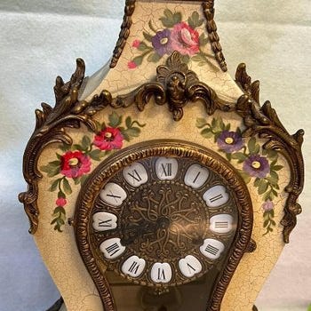 Gylden skive med romerske tal.
