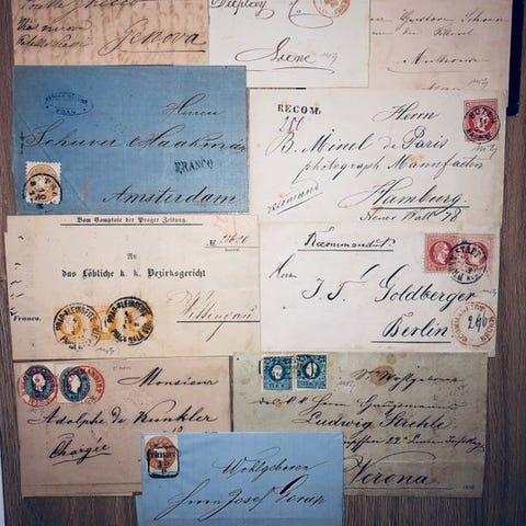 Østrig, 1850–1866, lot på 18 breve fuldt registrerede og udenlandsk postkatalog elevato; tilstand: brugt til brevomsendelse. Klik på den blå "gå til varen" knap, for at købe eller byde på denne vare. Den samlede pris vil blive vist inden du afgiver dit bud.