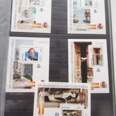 Pragtfuld filatelistisk samling fra Spanien, bestående af blokke af fire, småark og miniblokke, fortrinsvis fra årene 2002 til 2007, med enkelte udgivelser i 2008.