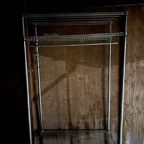 Reol med plads til tøj, sko og tilbehør. Har været samlet én gang og stået samme sted i 1 år.